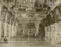 कै. श्रीमंत श्रीनिवासराव महाराज यांच्या कारकिर्दीत औंध येथील श्रीयामाई देवीचे देऊळ सन १९०१ साली पूर्ण झाले व पुढील सभामंडप बाधण्यास त्याच साली सुरुवात झाली होती. पुढे बाळासाहेब गादीवर आल्यावर त्यांचे कारकिर्दीत सन १९१० साली सभामंडप पुरा झाला. देवळास एकंदर ९४००० रुपये खर्च झाले असून सभामंडपास ६५००० रुपये खर्च झाले आहेत. सन १९२७-२८ साली श्रीचे सभामंडपात ग्वालेर पोट्रीजकडील व्हाईट व डेकोरेटेड टाईल्स बसविण्यात आली, टाईल्स वरील नक्षीचे डिझाईन औंधहूनच पाठविले होते. सभामंडपातील भिंती अजिंठ्याच्या चित्रकलेच्या धर्तीवर वेलपत्ती काढून व काही त्या चित्रांपैकी चित्रे काढून सुशोभित करण्यात आल्या. सभामंडपात श्रीमंतांनी स्वत: काढलेली श्रीकृष्णचरित्र, श्रीशिवाजी महाराज व सप्तशती व महाभारत यांतील चित्रे लावण्यात आलेली आहेत. सभा मंडपाच्या दुसऱ्या मजल्यावर आर्ट कलेक्शन, लायब्ररी व म्युझियअम होते.