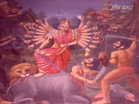 औंधासुराने अग्नीचा वर्षाव केला तो अंबेने पर्जन्याने विजावला.